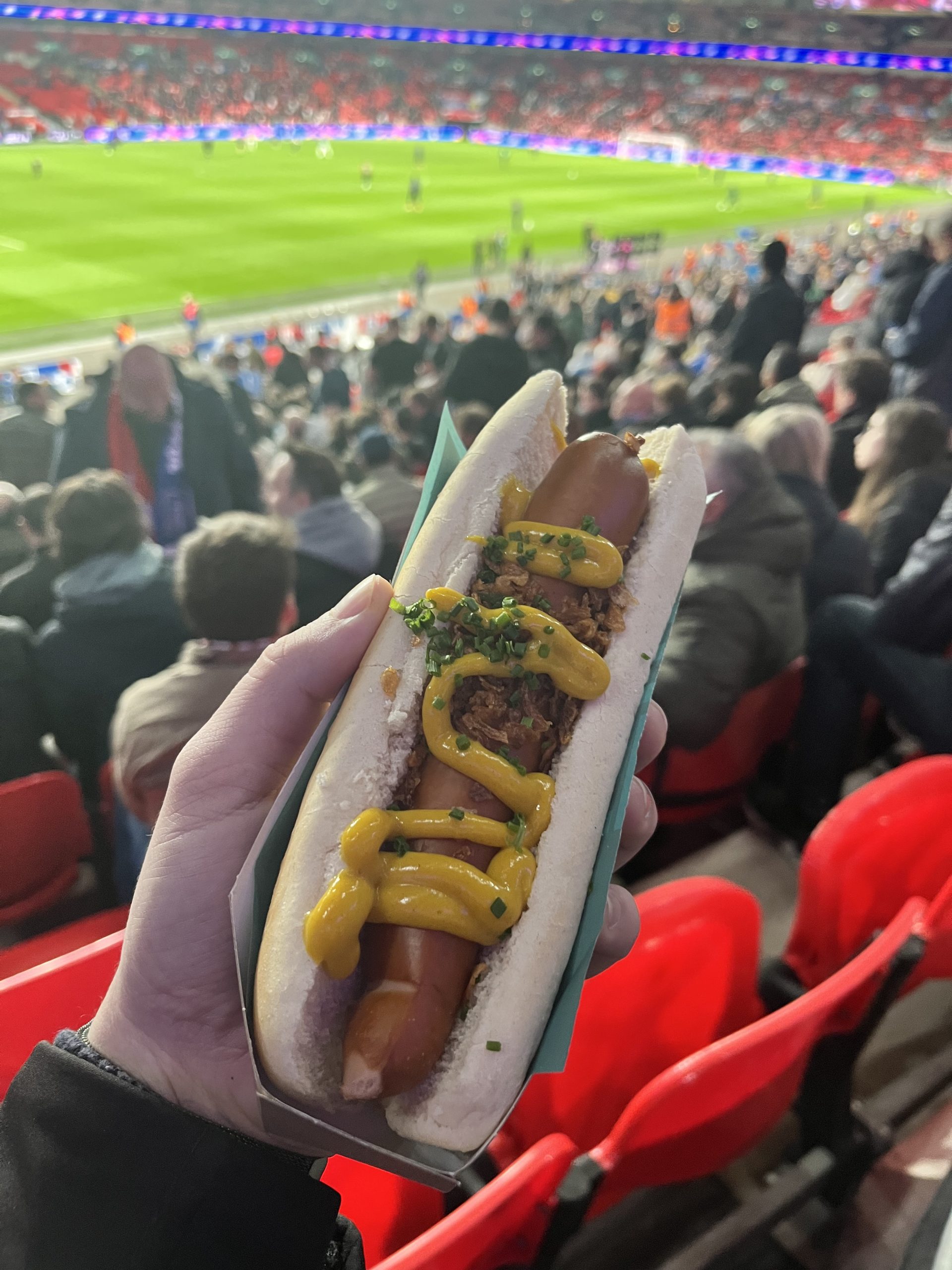 En el descanso llegó otra ceremonia: el hot-dog del estadio. De los mejores que he encontrado en estadios ingleses, un sándwich con salchicha y mostaza, a 8,85 libras – es decir, algo más de 10 euros. La mercantilización del amor popular se vuelve una carga para el bolsillo. Pero eso ya era lo de menos; yo esperaba ver cómo se desarrollaba ese juego tan interesante, que mostraba un equilibrio muy distinto al que se preveía antes de empezar.