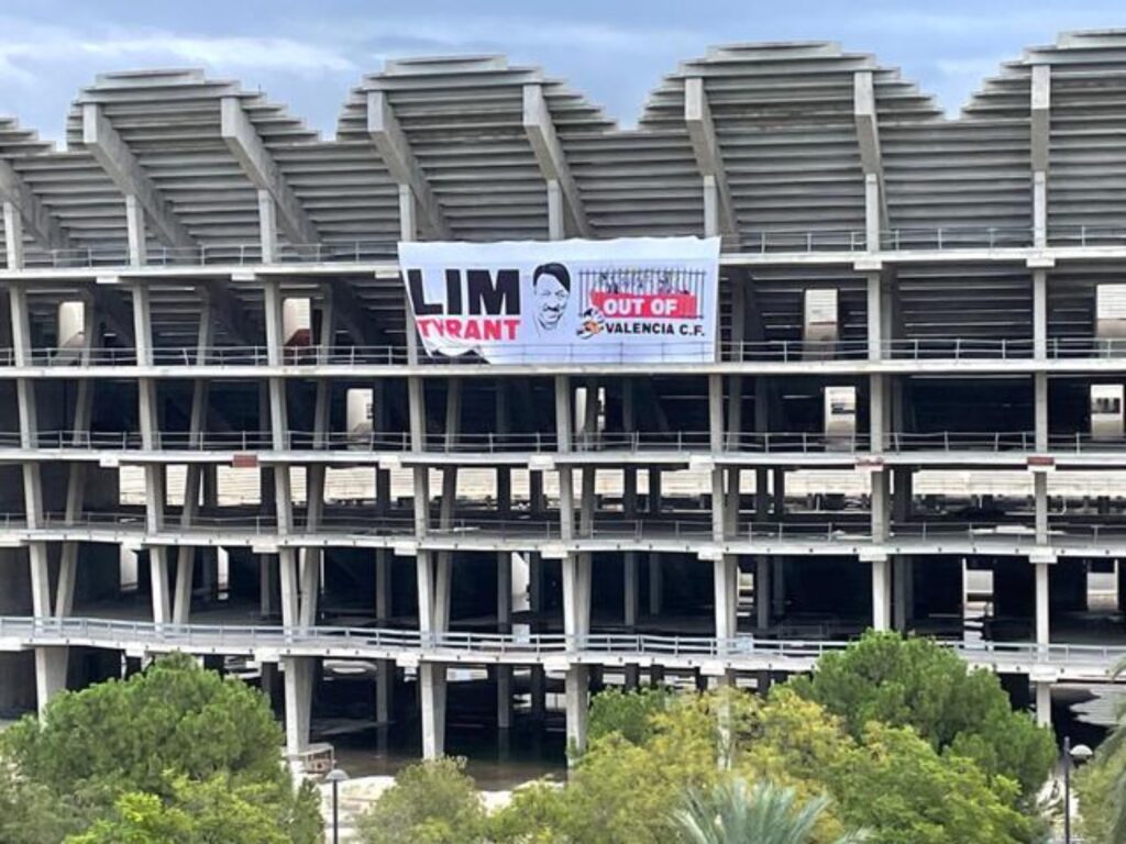 Frente a ellos —además de la dirigencia del club y su propietario— están el banco que se beneficiará del acuerdo y autoridades locales, en su mayoría pertenecientes al Partido Popular: todos ellos defensores de un “mercado aburguesado” y no de una sociedad culturalmente viva. Por eso cada vez hay más banderas que llaman a proteger la histórica casa del Valencia CF como condición indispensable para salvar al club. Una de esas banderas, dirigida directamente a Peter Lim, fue colgada en la obra del Nou Mestalla —mostrando también un contraste visual entre las promesas rotas y el futuro real del club bajo esta conducción.