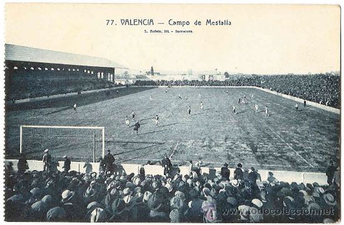 La construcción del Estadio de Mestalla se completó en 1923, para que se mudara allí la nueva potencia emergente del fútbol valenciano: el Valencia Club de Fútbol, fundado cuatro años antes, el 18 de marzo de 1919, que en sus primeros años jugaba en el Camp d’Algirós, a unos metros más cerca del entonces río Túria. Su construcción no fue un simple proyecto ambicioso, sino la respuesta al creciente caudal de público que iba a ver al nuevo club de la ciudad. Las primeras tribunas eran de madera y tenían capacidad para 17.000 personas. Ese número fue creciendo de manera constante, con los anillos apilándose uno sobre otro como una evolución natural, como crece el tronco de un árbol.